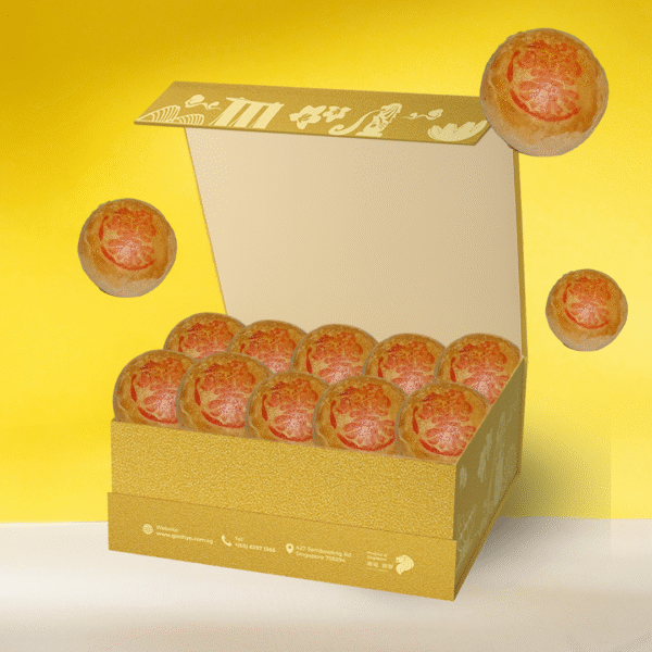 A glorious gold gift box with 5 pc sweet + 5pc savory Tau Sa Piah.